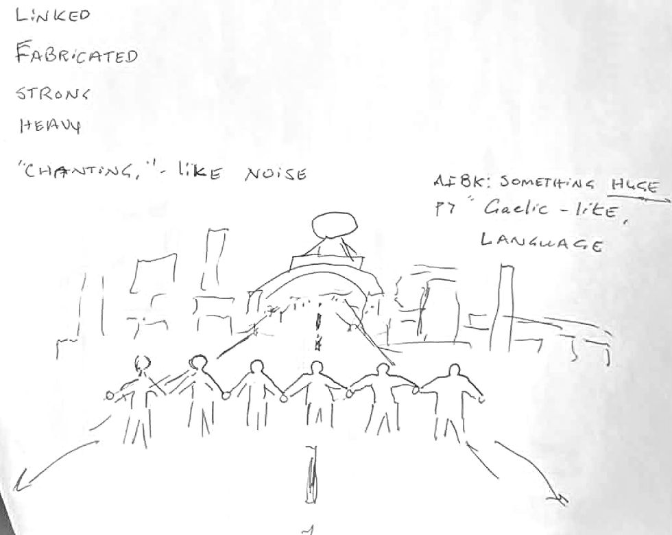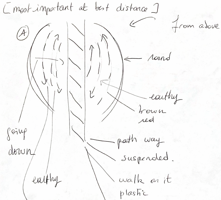 In the four sessions Charlie sees darkness, abyss, void), David an underground chamber, an artificial structure buried in land feature), John a hidden installation, a construction site, an islamic flag, and people holding hands on a road near infrastructure, and Patricia sees a section is underneath, building life underneath, and a different kind of lifestyle.